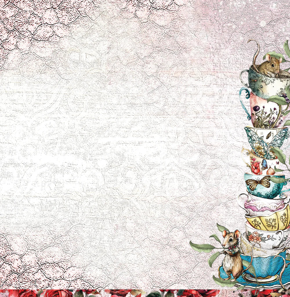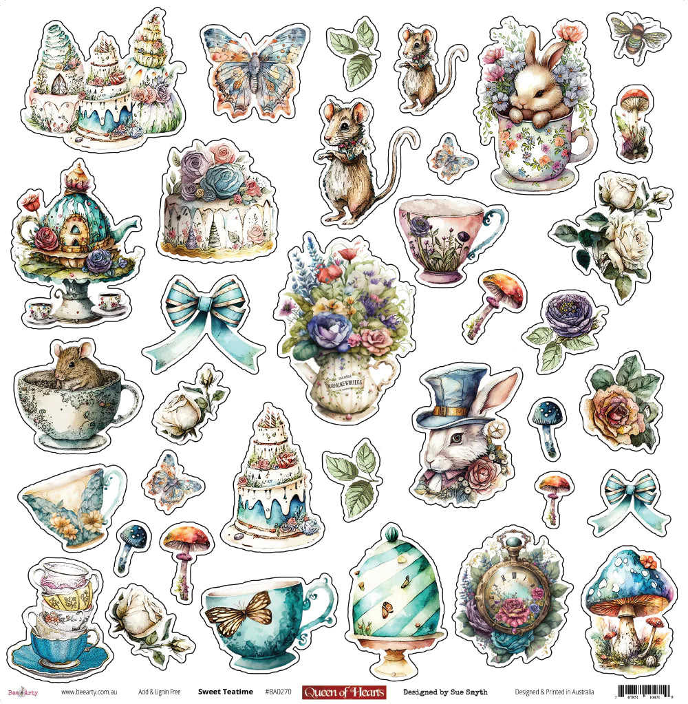 Double sided 12" x 12" scrapbooking paper exclusively designed by Sue Smyth as part of the Queen Of Hearts range.