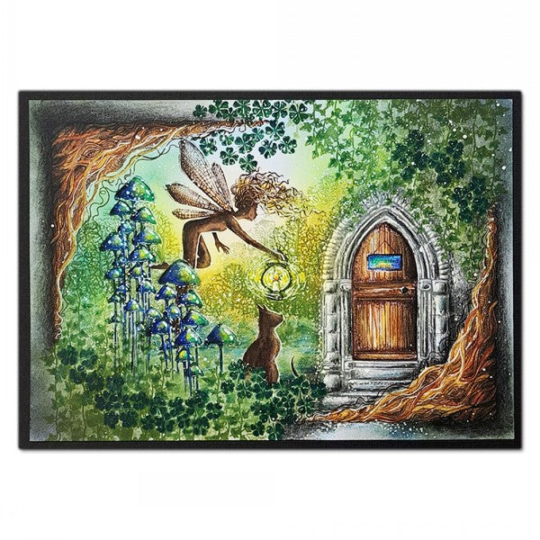 The root forms an interesting woven corner with flowing lines and curling tendrils. Stamp it around the edges for a beautiful frame for your design. Add interesting characters with the Fairy Bugs set.
