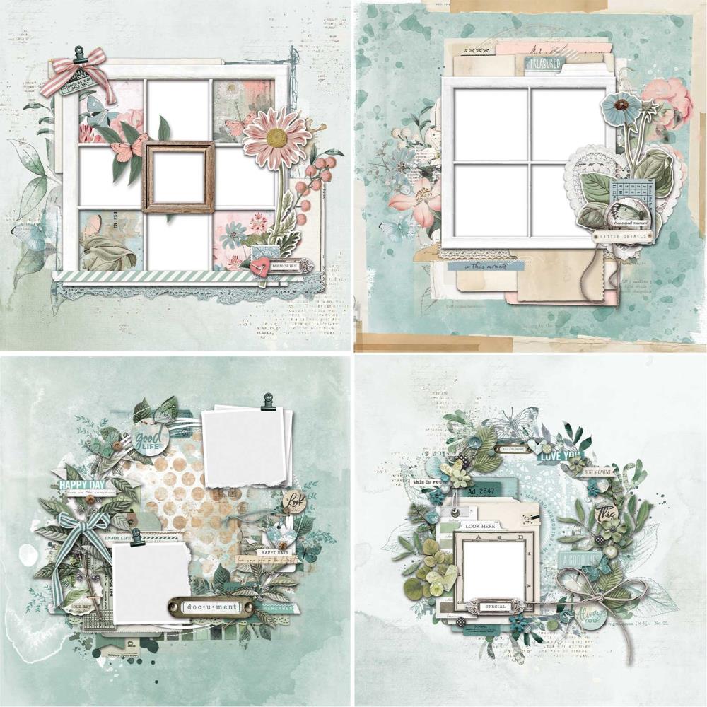 Brand new Page Kits bring together exclusive elements and the style you have come to know and love from 49 and Market. The Vintage Artistry Tranquility page kit includes the following pieces: 4 exclusive sheets of 12x12 inch patterned papers; 4 sheets of 12x12 inch laser cut elements; 2 sheets of thin adhesive-backed chipboard shapes and frame (approximately 6.5x12 inch and 8x8 inch; 4 metal clips and 4 ribbon bows. Be inspired by completed project samples that can be replicated or make your own. Slight variations may occur. Made in USA.