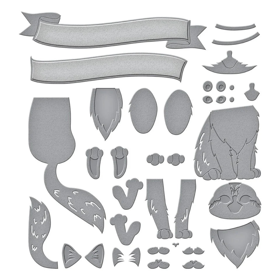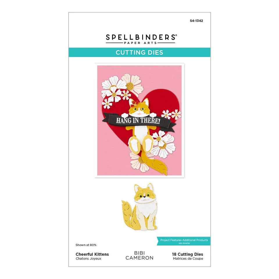 Cheerful Kittens Etched Dies are from the Bibi's Cats and Pugs Collection by Bibi Cameron. The set of 18 thin metal cutting dies creates two types of cute kittens – a cute sitting kitty and one hanging from a ribbon. Who can resist these sweet creatures? Purrfect for cat lovers!