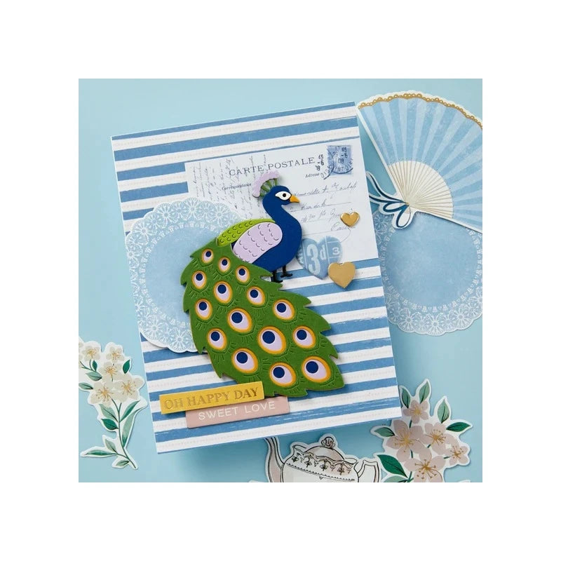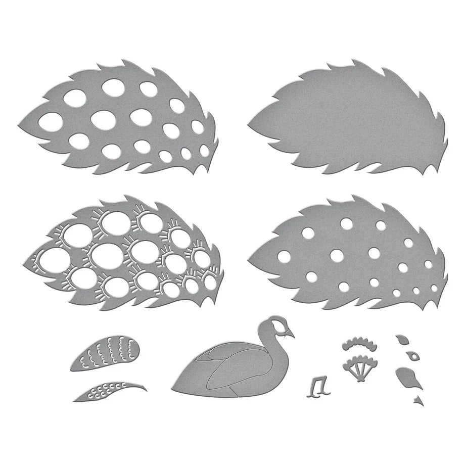 The Spellbinders Kaleidoscope Peacock Etched Dies, part of the Belleview Collection from Rosie's Studio. This majestic set comprises 10 intricately designed, wafer-thin metal dies that combine to form a breathtakingly elegant peacock. Rich in detail and layers, this peacock promises to be the focal point of your creative projects. Enhance its allure by embellishing with gems or cutting layers from glitter paper for an added wow factor.