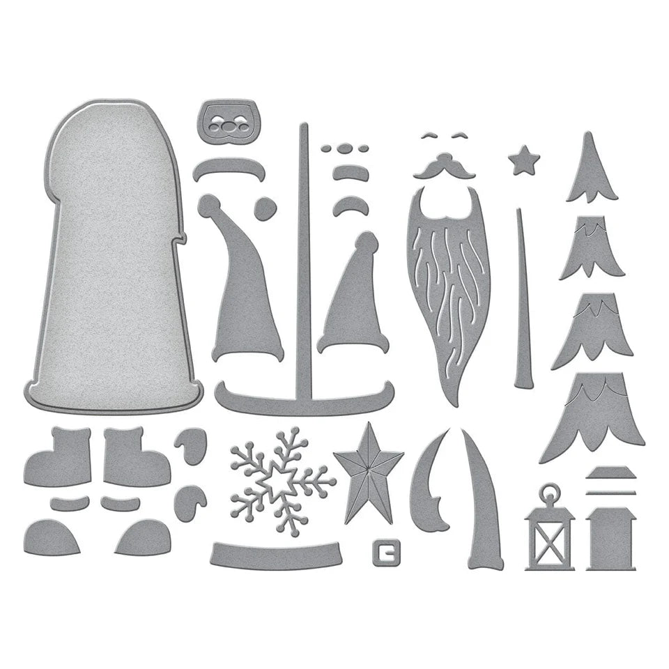 St. Nick Etched Dies are part of the Home for the Holidays Collection. If you collect Santas, this set of 15 thin metal cutting dies is for you! The set creates a Father Christmas-inspired design with all sorts of accessories such as a star, a Christmas tree, a lantern and more! A beautiful old world design to adorn your holiday cardmaking!