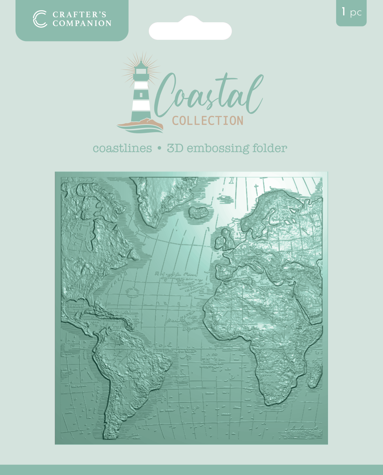 Create a gorgeous raised and embossed design of an intricate design of a vintage map on your projects with the Coastlines 3D Embossing Folder by Crafter’s Companion.