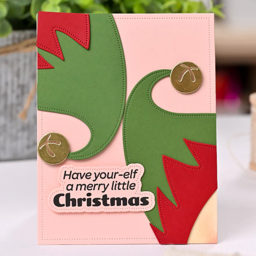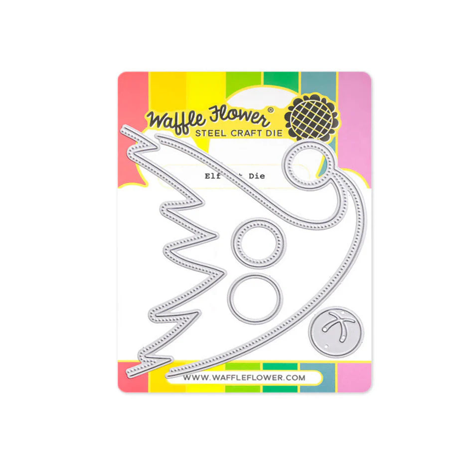 Waffle Flower Elf Hat Dies offer a large-scale design perfect for bold, graphic holiday cards and playful layouts. The set includes curved stitching lines for added detail, along with separate dies for the trim, pom-pom, and bell, making it easy to layer different cardstock colors or add dimension with foam tape. Use the hat as a fun focal point or tuck it into corners to enhance your scene. Set includes 5 dies. Approximate sizes: hat is 3.94 x 3.13 inches, trim is 4.06 x 1.63 inches, and bell is 0.75 x 0.75 inches.
