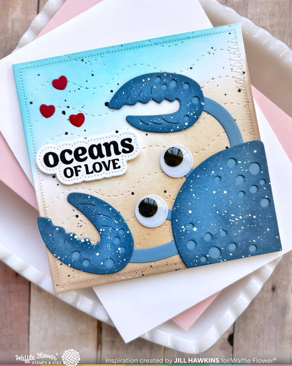Add a fun and whimsical touch to your coastline-themed cards with the Inquisitive Crab Die by Waffle Flower! This set features a close-up look of an adorable crab image that works well with their coastal collections. We especially love the look of it sticking its head out at the corners like they are photobombing your scene!