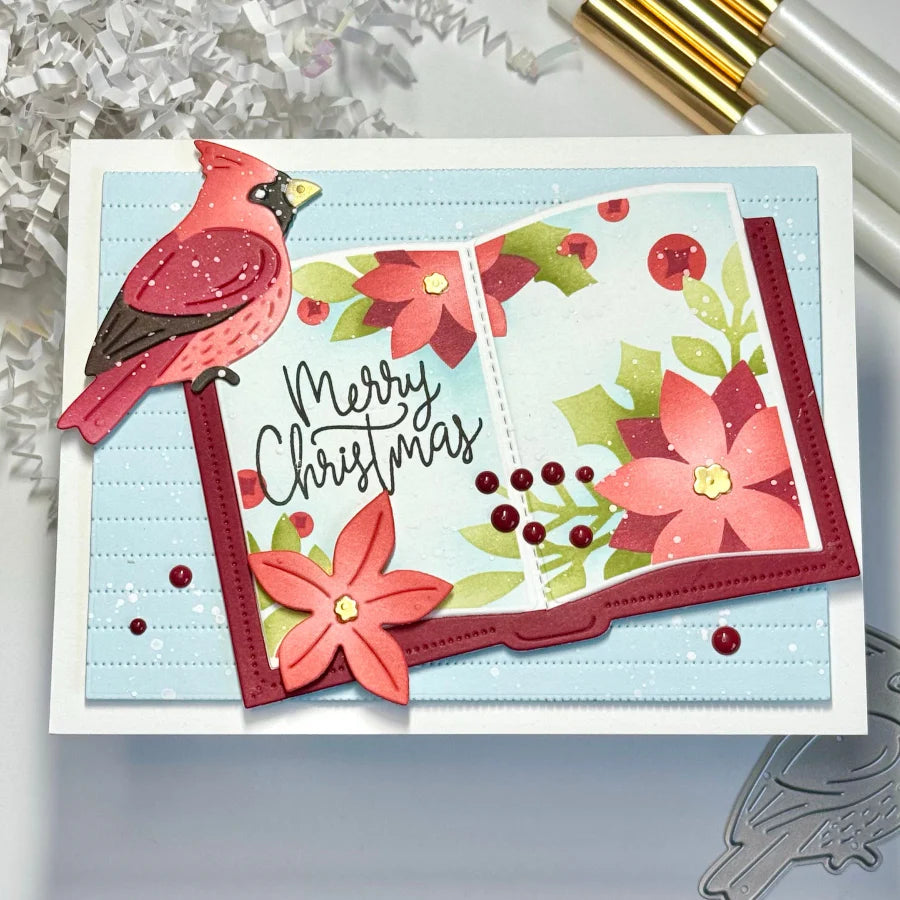 The Piercing Lines Texture Die creates subtle stitched-style lines that can be used horizontally or vertically to cover an entire A2 card front. The die base is exactly A2 size for easy alignment. When extending the pattern vertically, use the edge of the die to line up the piercing lines and maintain a seamless look.
