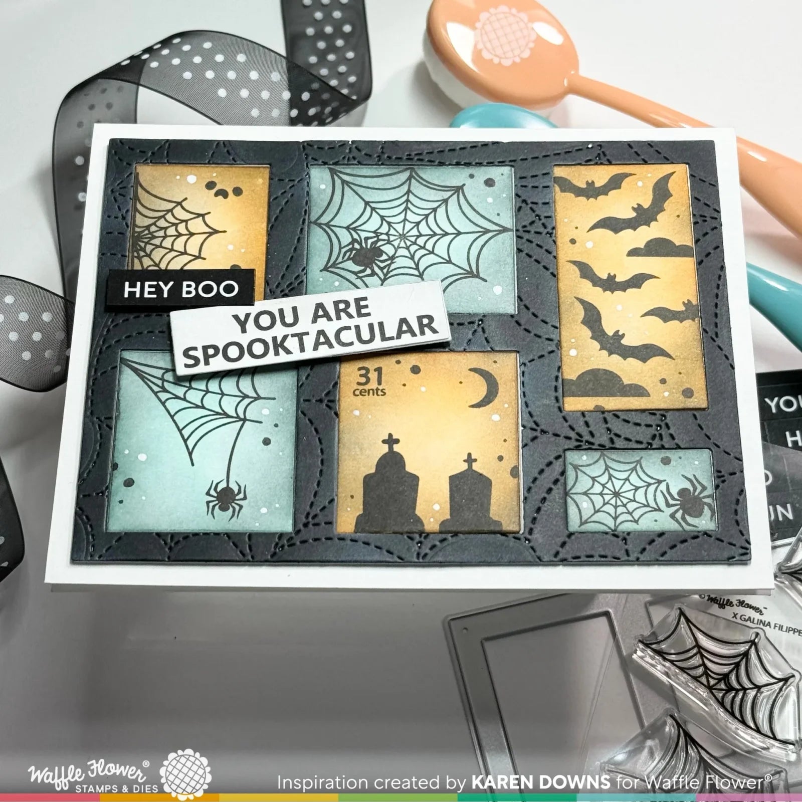 Designed to work with all of the coordinating Postage Collage stencils, the Blocks die includes a frame die that cuts out all 6 windows for the panel die from the Postage Collage Die. Here are a few uses for it: