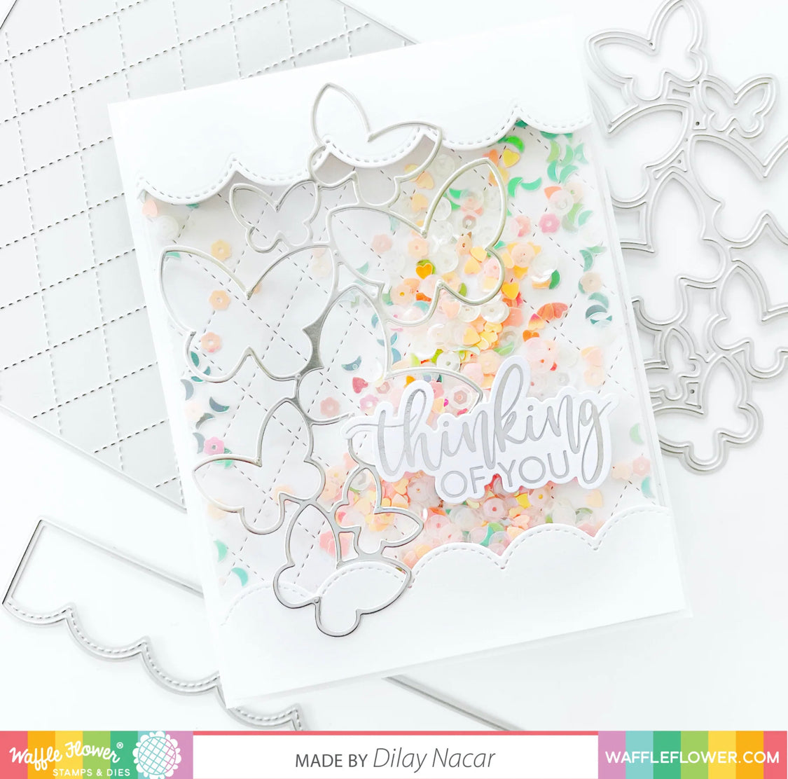 We recommend adding adhesives to the back of your cardstock, then remove protective film on the front of the acetate sheet, and secure 3 of the 4 tabs to the back of the cardstock to form a pocket; fill with confetti, sequins, diecut shapes, and more before sealing the last tab.